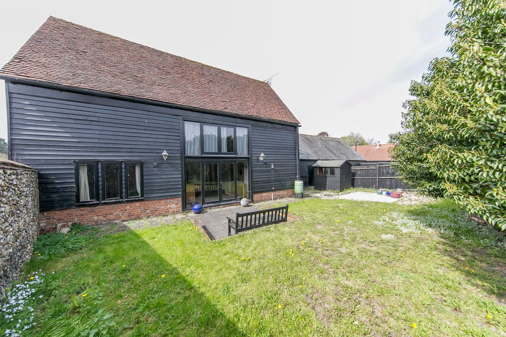 The rear garden commences with paved patio area with mature garden laid to lawn enclosed by a feature stone wall, there is a shed to remain and hard standing area for a hot tub