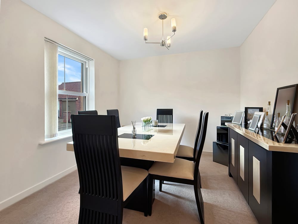 The ground floor comprises a welcoming entrance hall with stairs rising to the first floor, a convenient cloakroom, and a bright double-aspect living room featuring French doors opening onto the rear garden. In addition, there is a spacious kitchen/breakfast room perfect for everyday family living, along with a separate formal dining room that could equally be used as a snug or additional reception room.