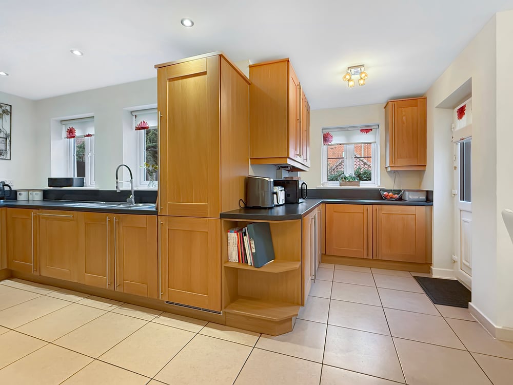 The first floor hosts four well-proportioned double bedrooms, with bedrooms one and two benefiting from en-suite shower rooms. A stylish four-piece family bathroom serves the remaining bedrooms.