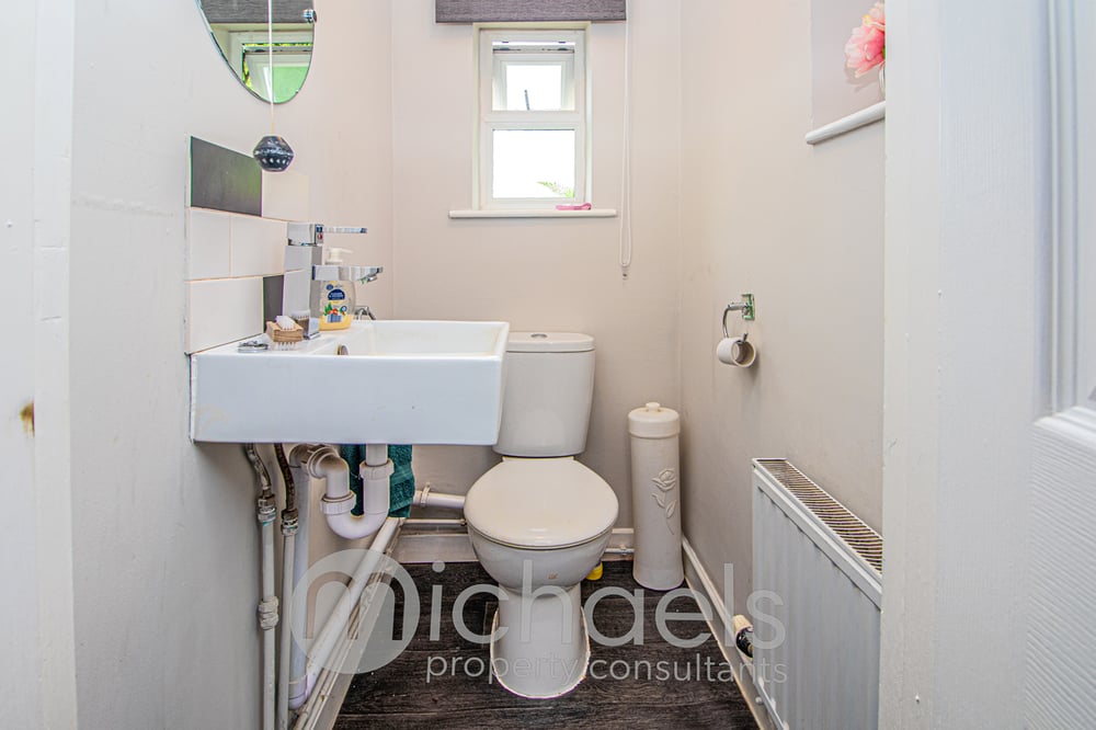 Smooth ceiling, radiator, double glazed obscure window to rear aspect, low level WC, wash hand basin.
