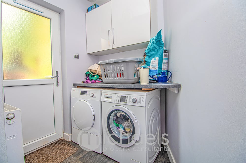 6' 01" x 5' 02" (1.85m x 1.57m) Smooth ceiling, radiator, double glazed door to rear aspect, matching wall and base units with rolled edge worksurface, space and plumbing for appliances.
