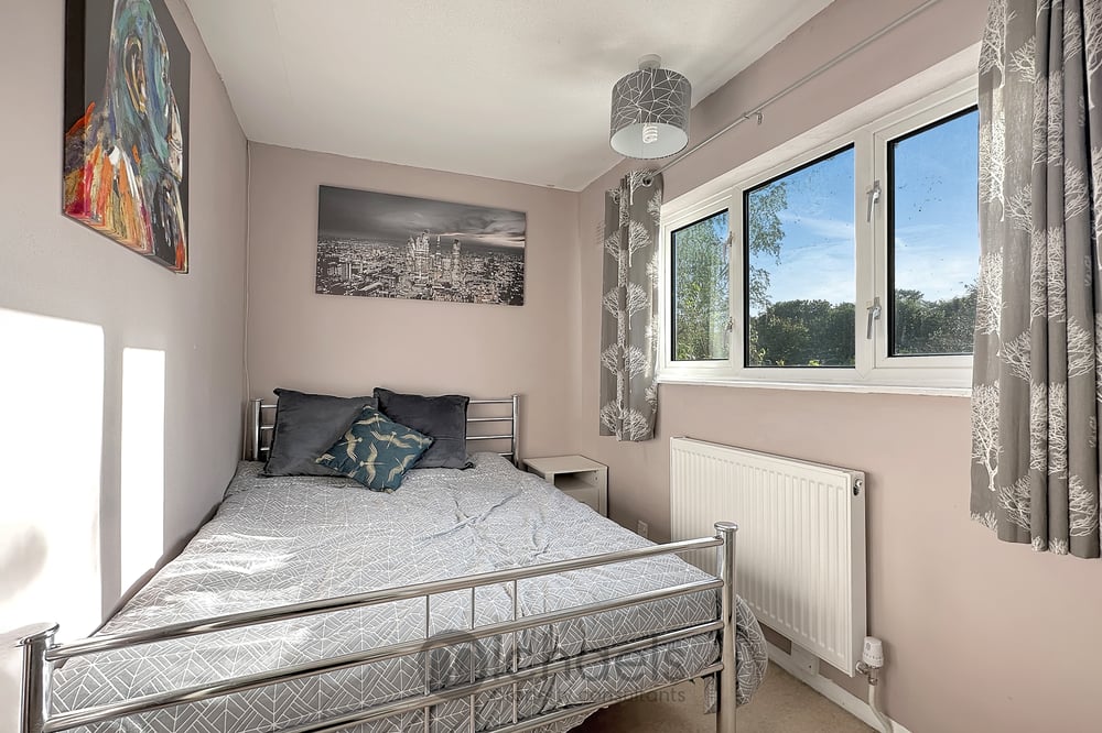 Outside the property features a large garden enclosed by panel fencing and mainly laid to lawn with a paved patio area to the front, which could be ideal for outside dining or entertaining. The property backs onto Friday Woods with gated access from a path to the rear. To the front of the property offers a driveway for two vehicles, along with a small greenery to the front which could also be used as parking.