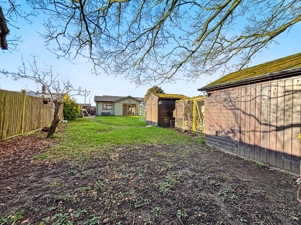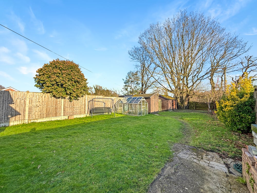 A generous rear garden mainly laid to lawn, patio area, green house two garden sheds, retained by fencing.