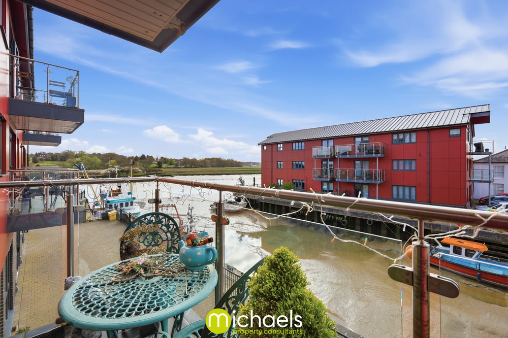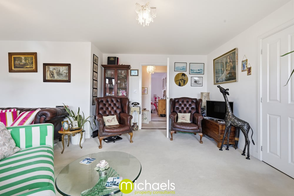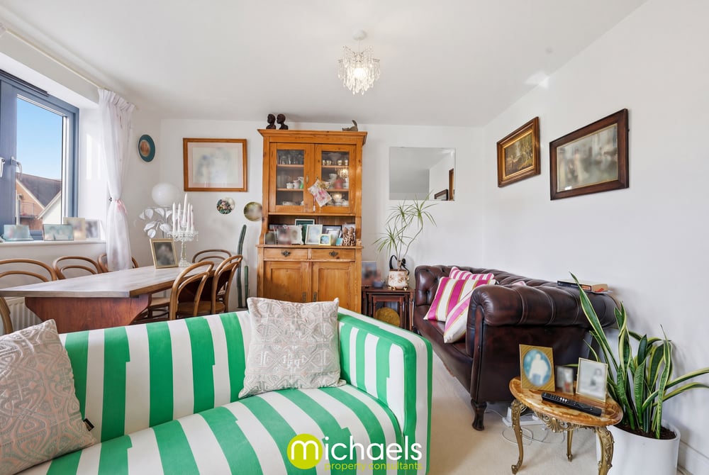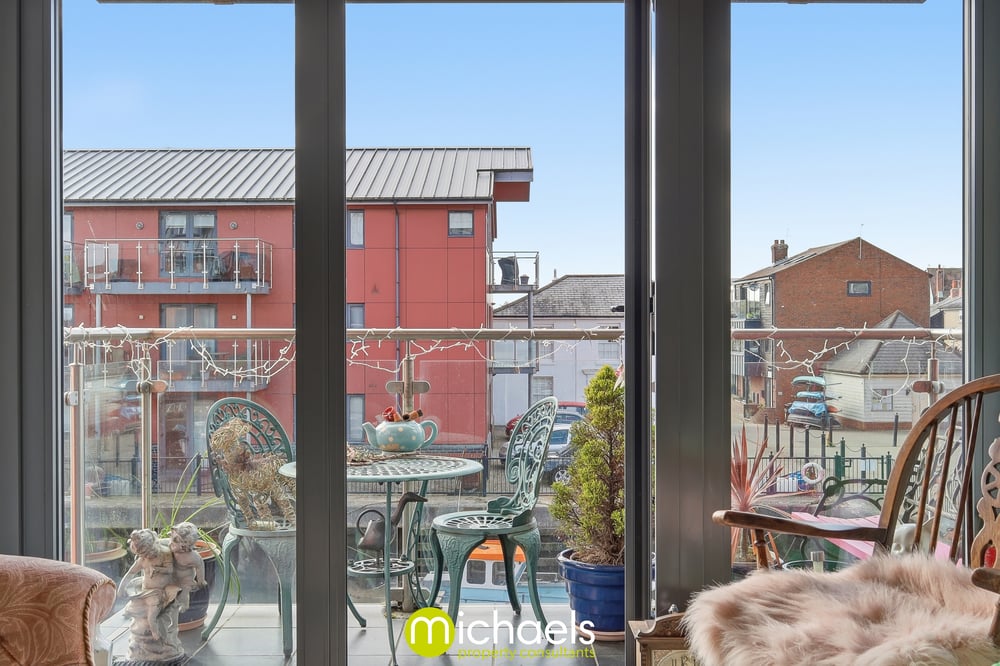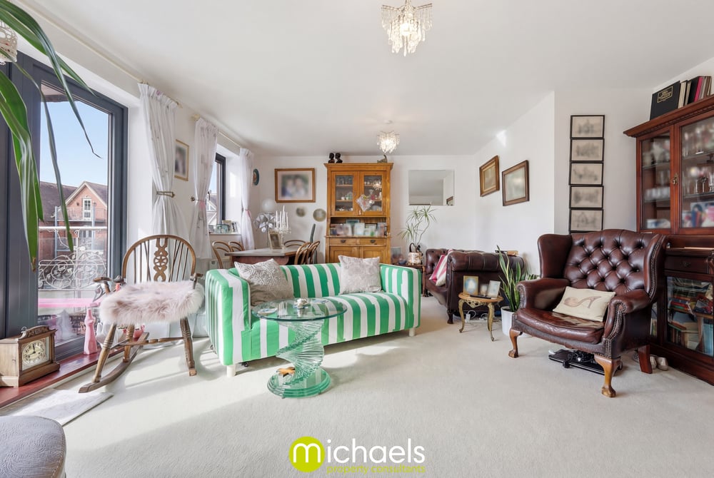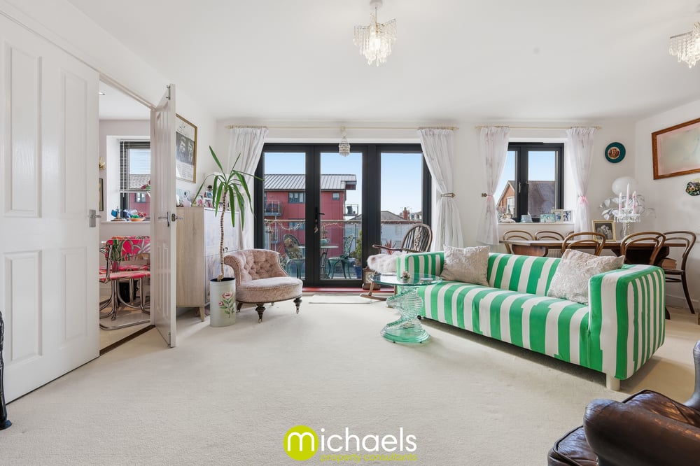 Double glazed window to front with river view, double glazed French doors to balcony, radiator, open plan onto the kitchen.