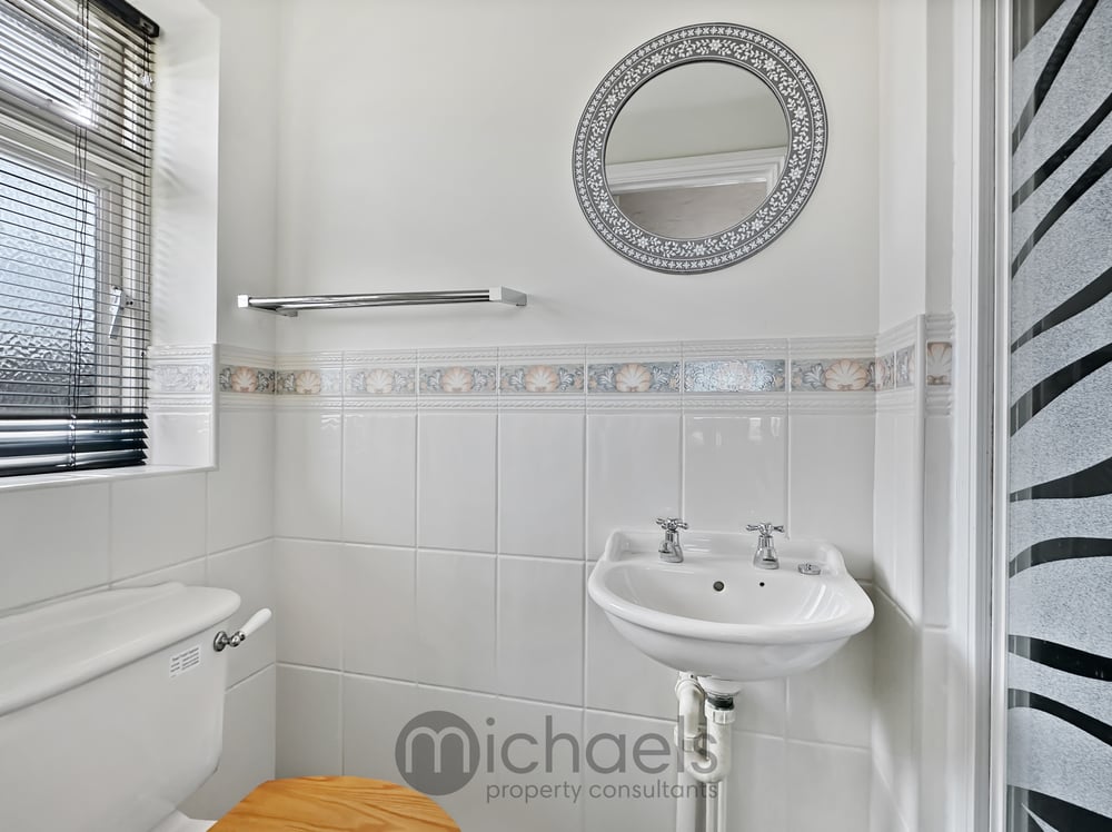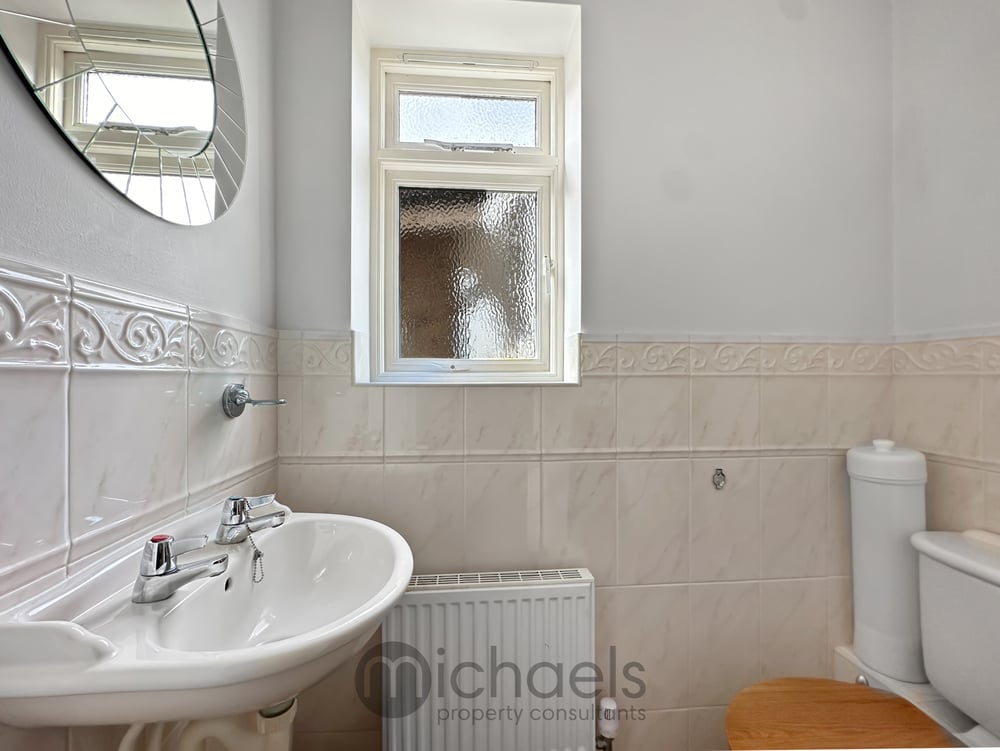 Wash hand basin, tiled walls, W.C., window to side aspect