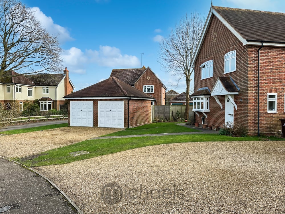 A double garage is accessible via two up and over doors, with the garage featuring full power.