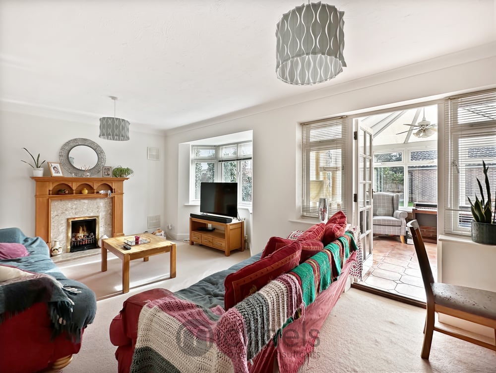 3.42m x 5.92m (11' 3" x 19' 5") Bay-window to rear aspect, radiator x2, feature gas fireplace, doors to: