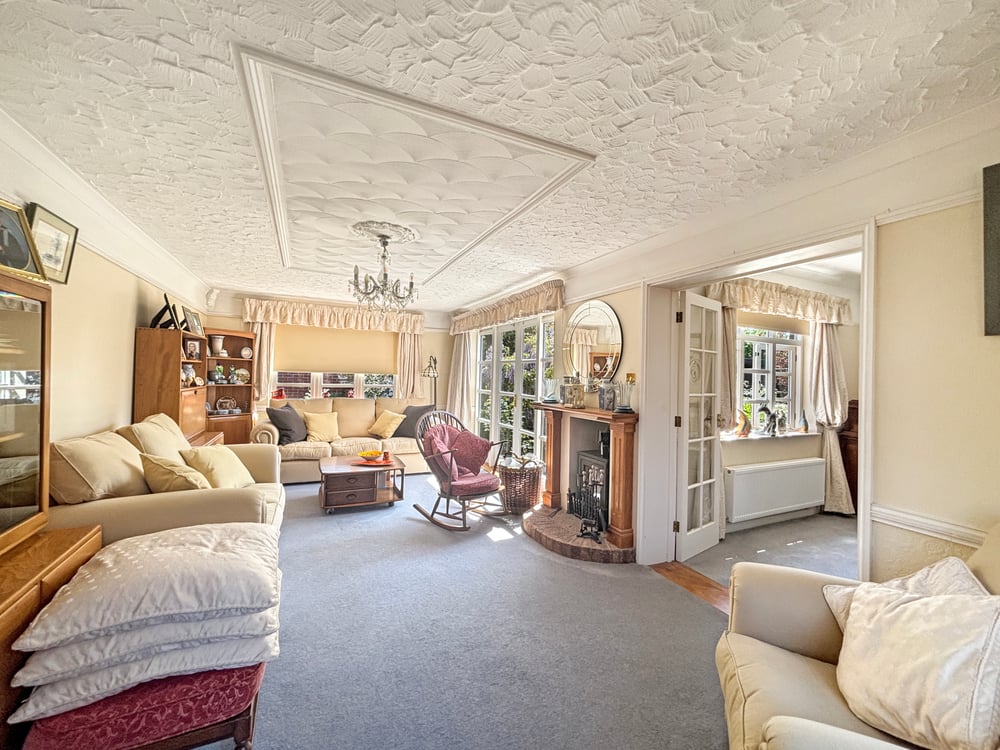 22' x 11' 1" (6.71m x 3.38m) Bow bay window to front, window to rear, French doors to side, multi fuel burner with wood mantle over, radiator.
