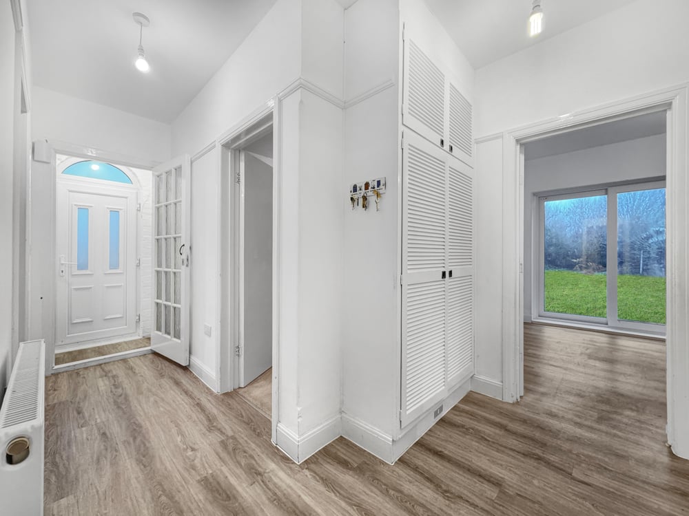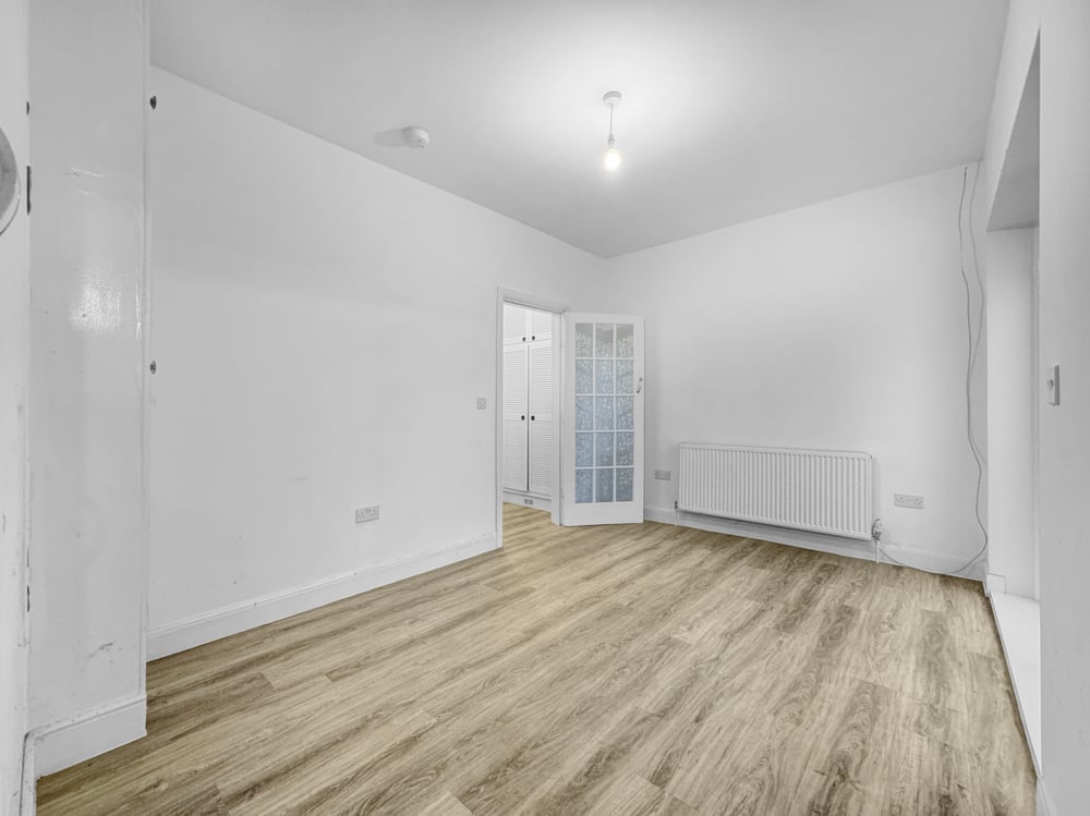 Wood effect flooring, radiator, loft access, fitted storage cupboard and doors to.