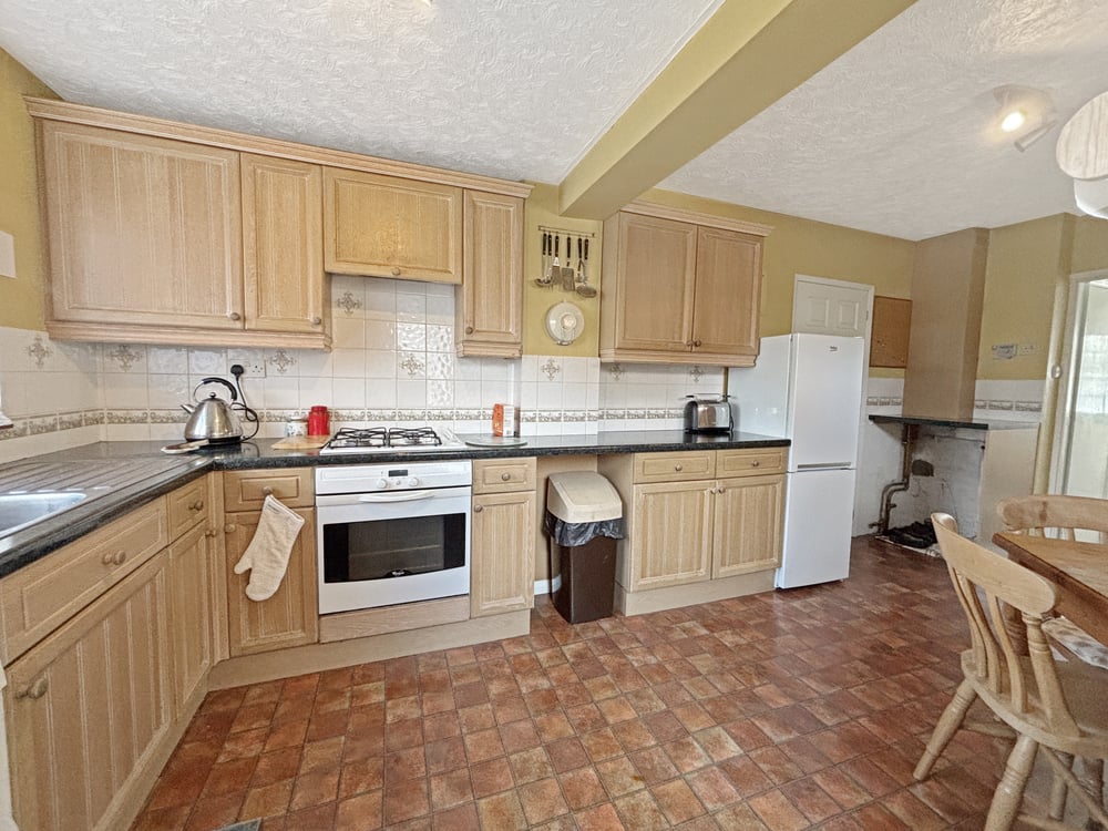 18' 7" x 8' 1" (5.66m x 2.46m) Double glazed window to rear, side UPVC door, radiator, fitted kitchen including a range of wall and base units, tiled splash back, laminate worktop, stainless steel sink with left and right hand drainer, oven, gas hob, over head fan and space for washing machine and dish washer. The boiler is wall mounted inside a cupboard. Pantry style cupboard, open plan onto the breakfast room.