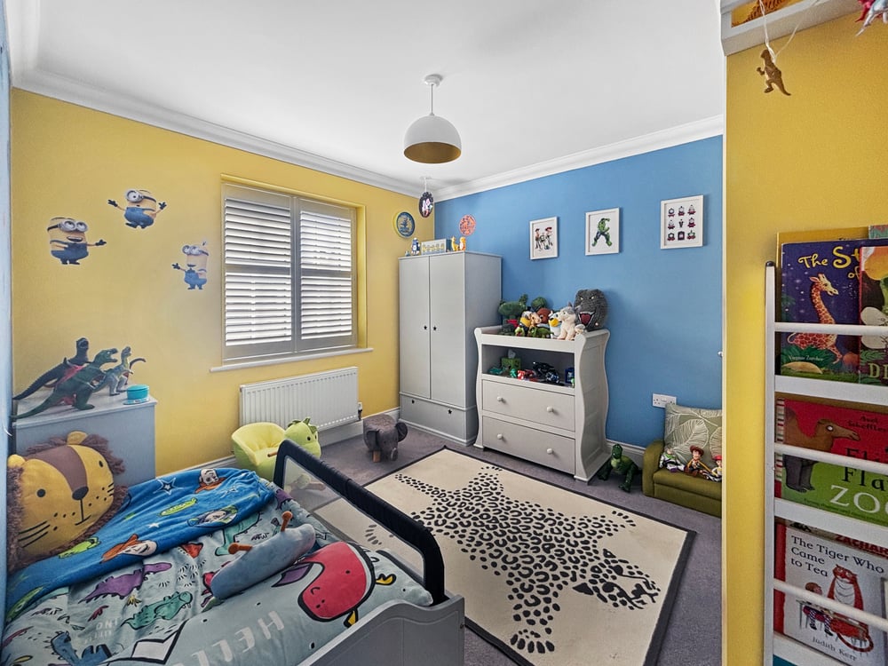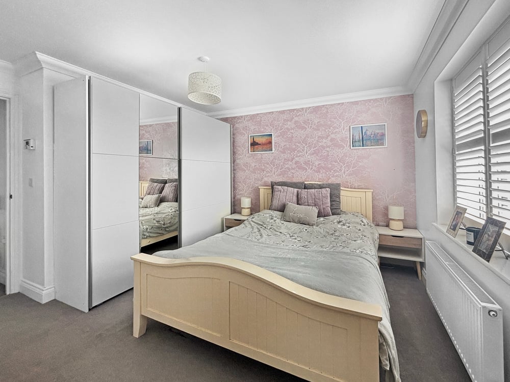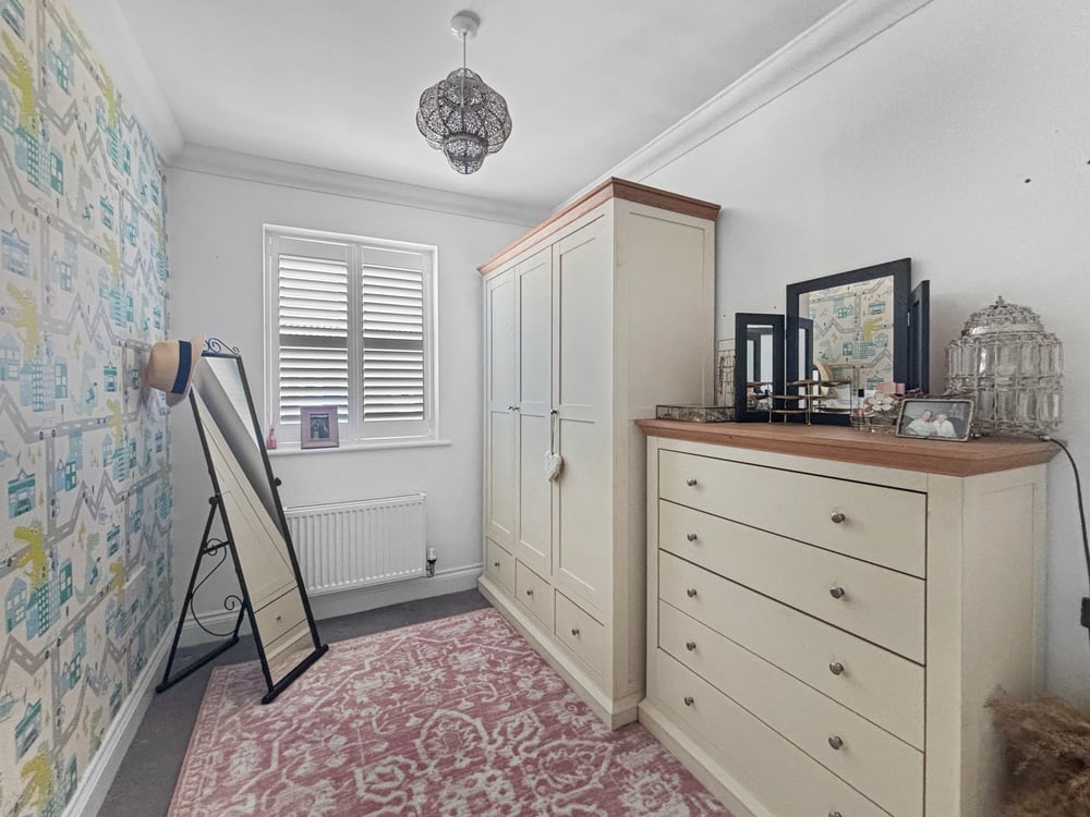 9' 7" x 8' 11" (2.92m x 2.72m) Doubled glazed window to front shutters, radiator and fitted wardrobes.