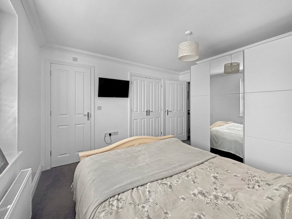 11' 2'' x 10' 10'' (3.39m x 3.30m) Double glazed window to the front, radiator and built in double wardrobe.