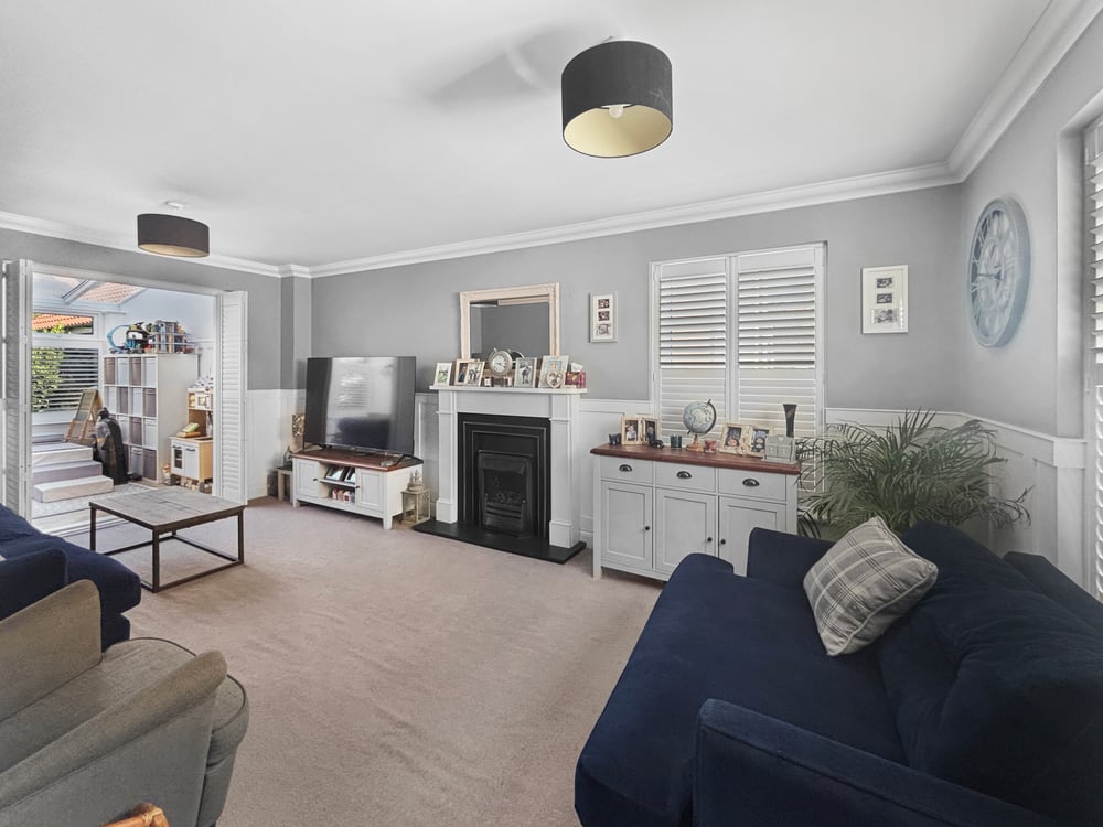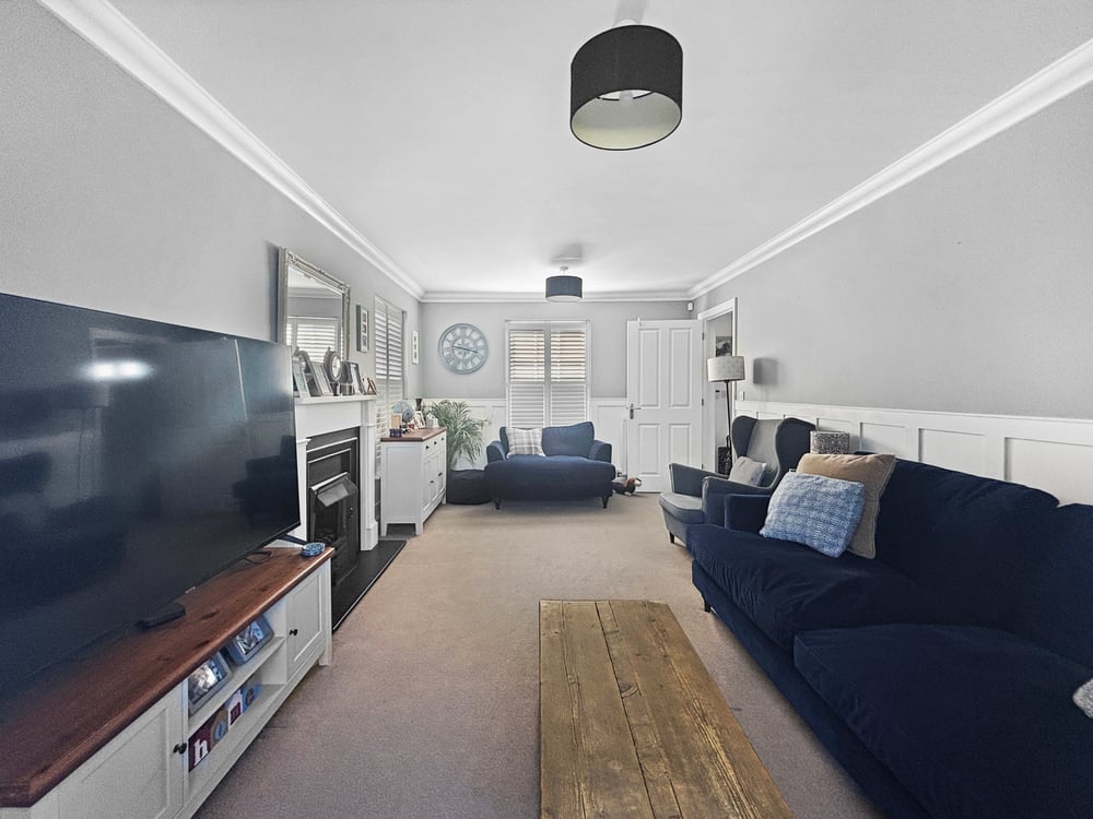 18' 3'' x 10' 10'' (5.56m x 3.30m) Double glazed window to the side with shutters, and front, radiator, feature fire place and panelling.