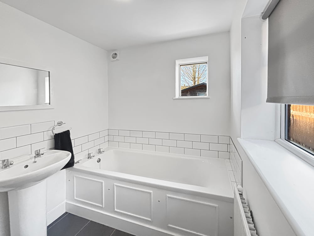 Double glazed windows to rear and side tiled floor, radiator, panelled bath, WC and wash hand basin.
