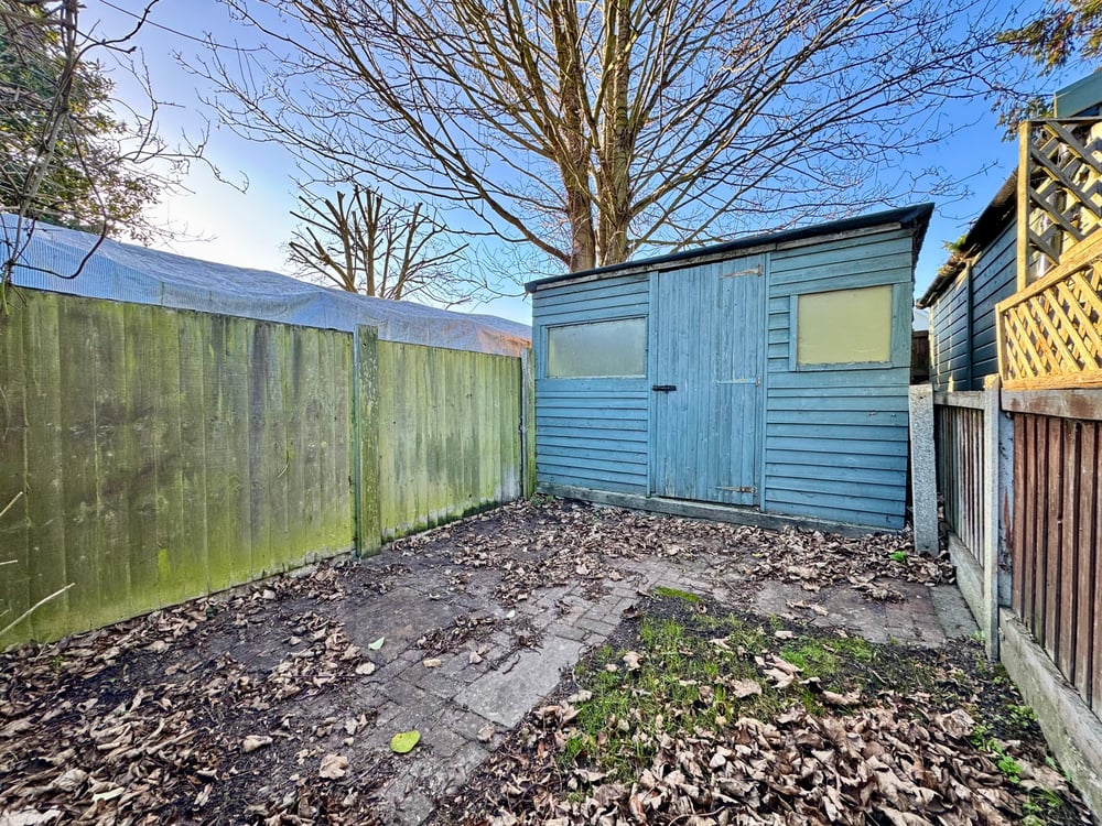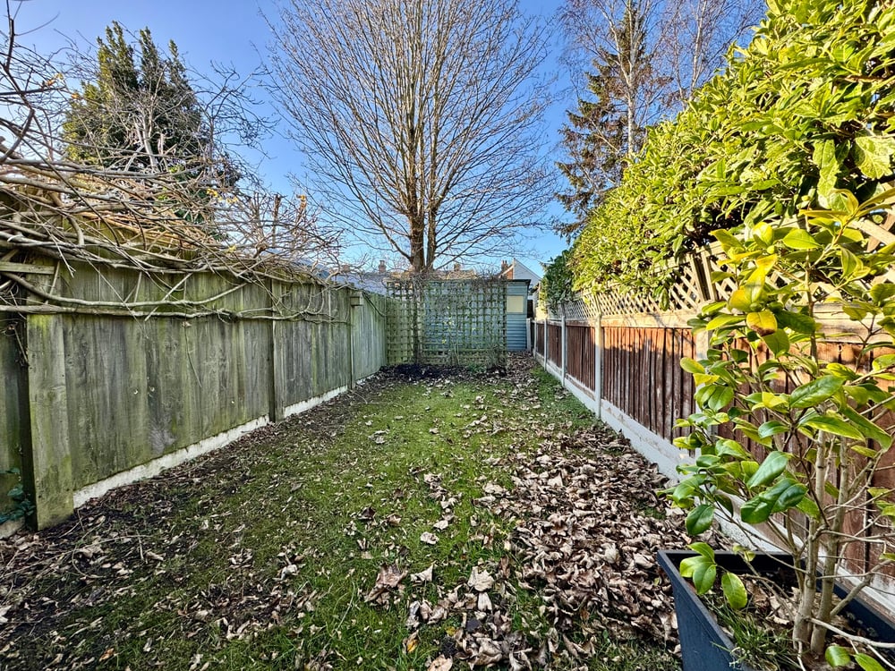 A well maintained west facing rear garden patio area, pathway leading to end of the garden, garden shed and a further garden shed/workshop, side gate with right of way for neighbouring property.