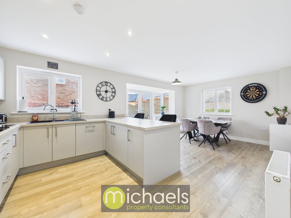 Set on a generous corner plot within the highly sought-after Harvard Place development, this newly built detached family home offers modern living in the charming village of Earls Colne. Positioned towards the edge of the development, the property combines a spacious layout with high-quality finishes throughout.