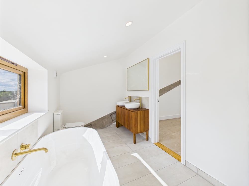 The first floor continues to impress, with three generously sized double bedrooms, each benefiting from its own en-suite shower room, ensuring both comfort and privacy.