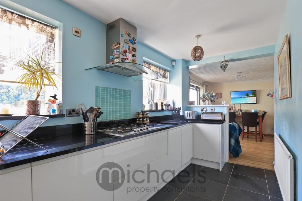 9' 9" x 8' 8" ( 2.97m x 2.64m ) With stainless steel sink and drainer unit, plumbing for washing machine, central heating boiler and UPVC double glazed door and window to rear.