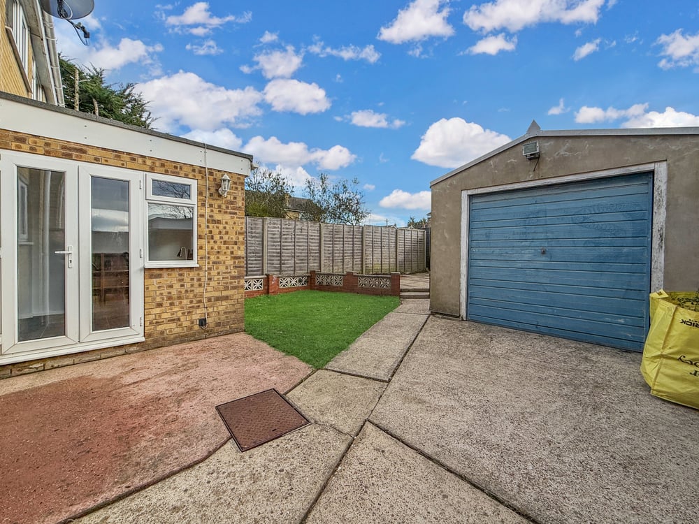 Garage 20' 7" x 10' (6.27m x 3.05m) Up and over door to front, UPVC door to side, window to side, power and light connected.