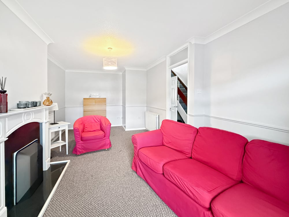18' 7" x 10' 10" (5.66m x 3.30m) UPVC window to front, two radiators, feature gas fireplace with hearth and mantle over.