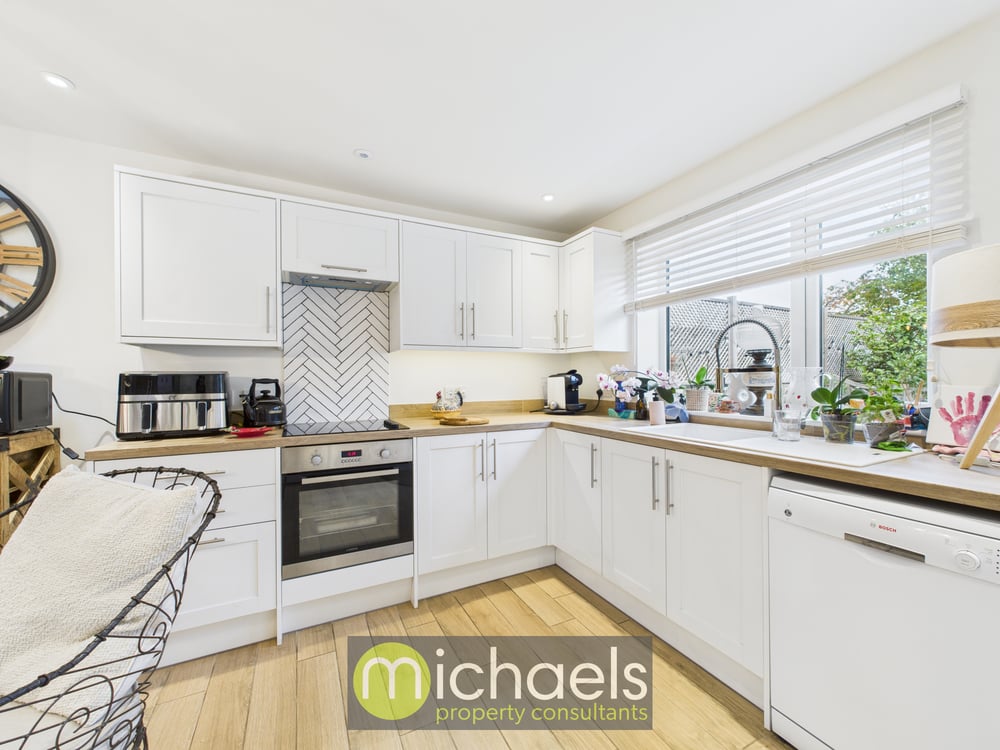 Outside, the property enjoys a private, low-maintenance rear garden and a driveway providing off-road parking. To the front, a neat garden is enclosed by attractive brick walling, enhancing the home’s kerb appeal.
