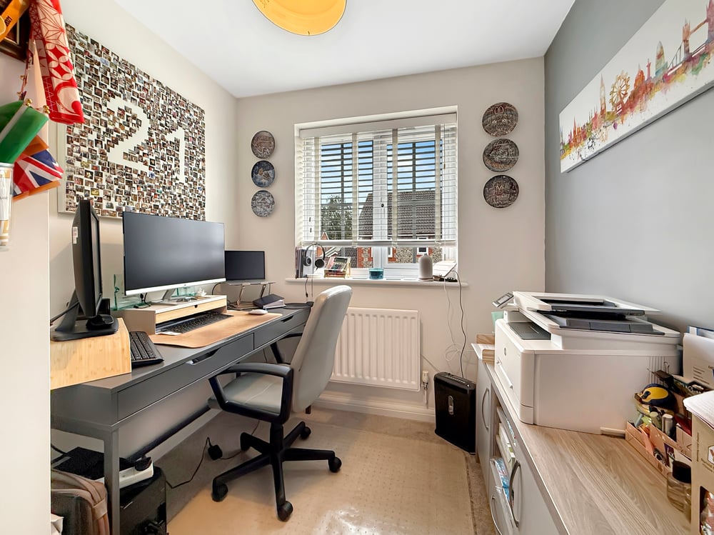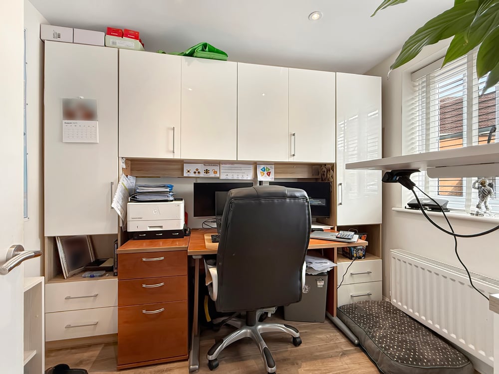 Forming part of the family orientated and ever sought-after Kings Park development, coming to the market for the very first time since new, this well presented and sympathetically extended family home enjoys flowing internal living space, offering no less than three reception rooms, with additional space within the converted garage for a work from home space or gym/playroom. The well designed loft-conversion offers a generous master suite comprising of a walk-in dressing room and en-suite, giving a total of five bedrooms with a further en-suite to the second bedroom, as well as a modern fitted family bathroom. Working from home is no problem in this versatile home, with a ground floor study, as well as potential for a second home office within the first floor fifth bedroom. Externally, there is block paved frontage offering plenty of off street parking, whilst the landscaped rear garden offers a peaceful retreat during warm summer afternoons, with paved patio seating areas, together with an area to lawn, giving space for the younger generation to play.