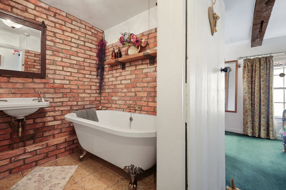 A stylish but classic refitted suite with feature brickwork and clawfoot bath.
