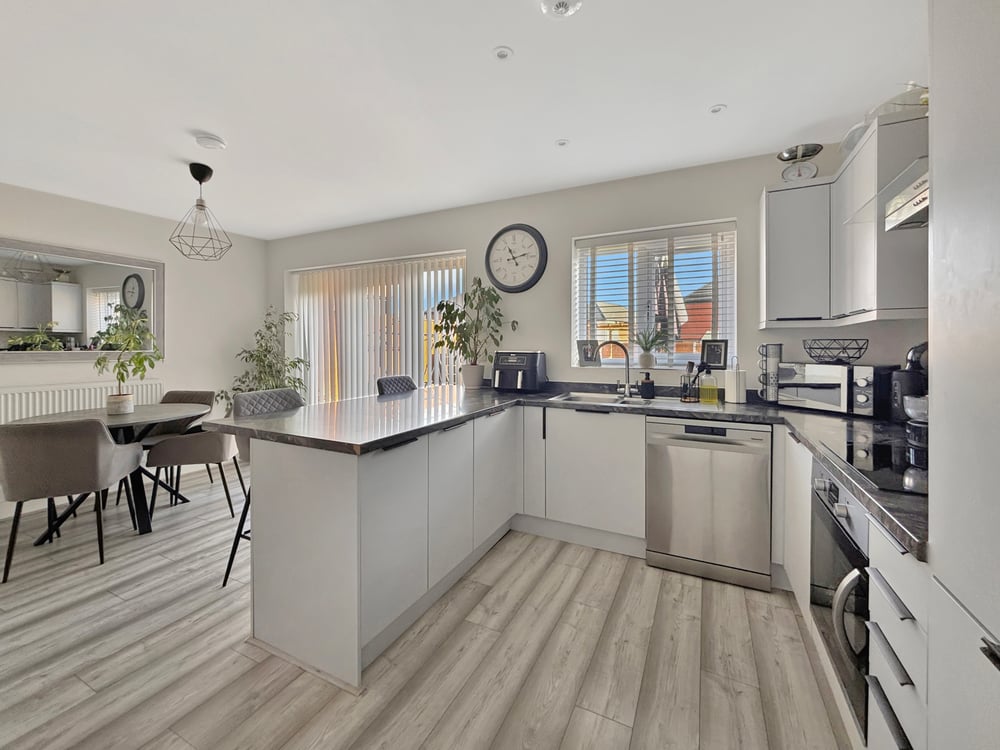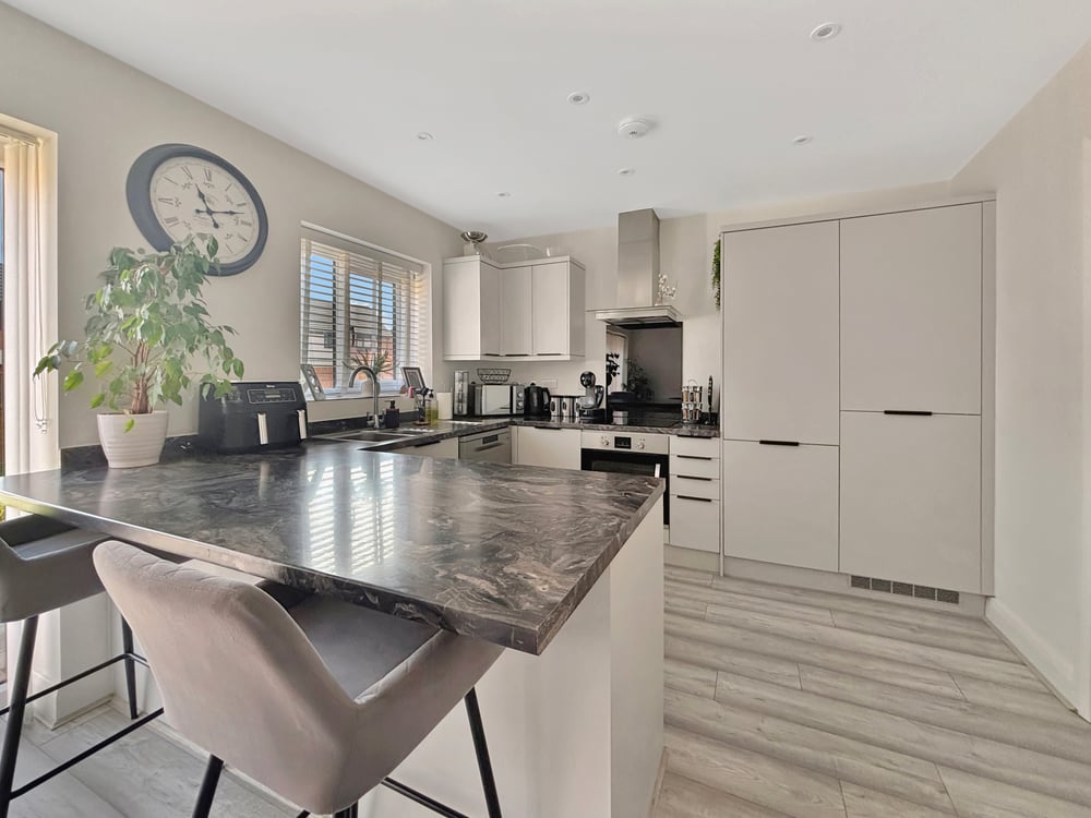 17' 9" x 10' 10" (5.41m x 3.30m) Double glazed windows to rear French doors opening out onto the rear garden, a range of wall and base units, sink right hand drainer , oven and hob, extractor fan, integrated appliances, breakfast bar,radiator
