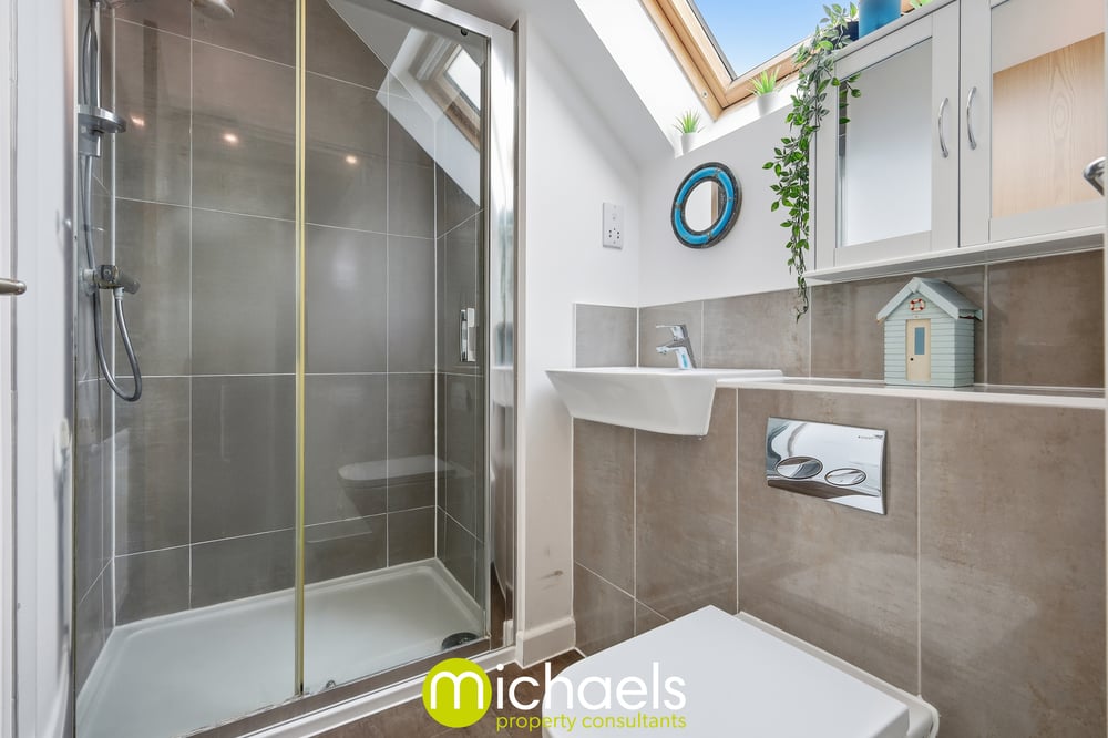 The first floor offers an open landing that could easily serve as a study space, together with a generous living room, two further bedrooms, and a modern family bathroom. The second floor is dedicated to the large principal bedroom, featuring built-in wardrobes and a private en suite shower room. Outside, the rear garden has been thoughtfully designed for low maintenance, featuring a patio and large decked area that enjoys full sun throughout the day in the summer perfect for outdoor dining and entertaining. The garden also benefits from new Astro turf fitted in May and a powered shed/bar area, complete with four electrical sockets and a light fitting. To the front, a secure car port provides parking for multiple vehicles, and the property also benefits from solar roof tiles, offering an element of renewable energy efficiency.