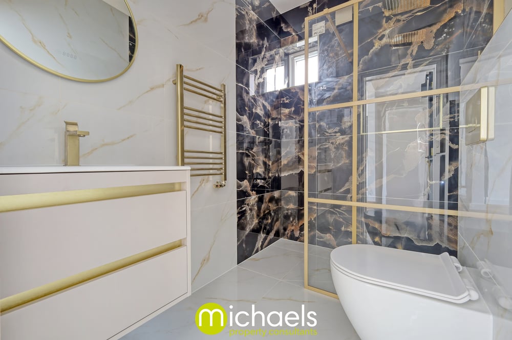 Upstairs, there are four generously sized bedrooms, with the principal room enjoying a stylish en-suite shower room with vanity basin. A beautifully finished family bathroom serves the remaining bedrooms.