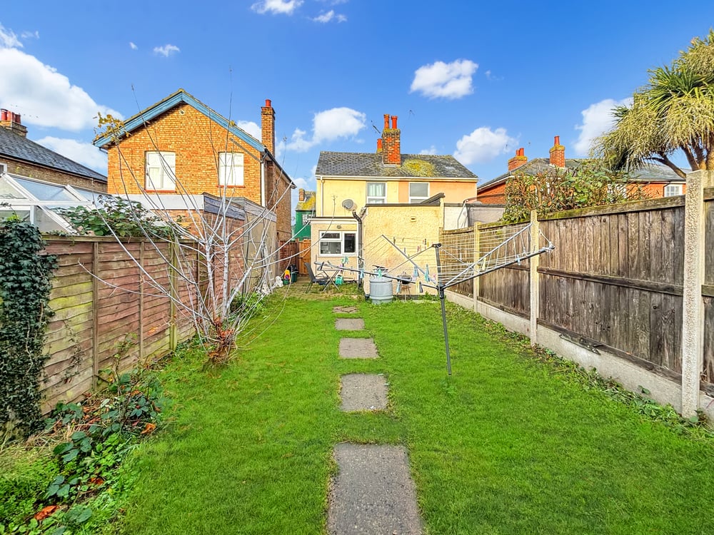 18' 11" x 11' (5.77m x 3.35m) With double glazed window to rear and double glazed door to side, a range of rolltop work surfaces with base level cupboards under, electric hob and oven, inset sink and drainer, tiled splashback, radiator, boiler, space for washing machine, fridge/freezer, door to bathroom and stairs rising to