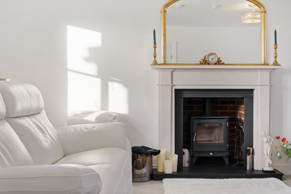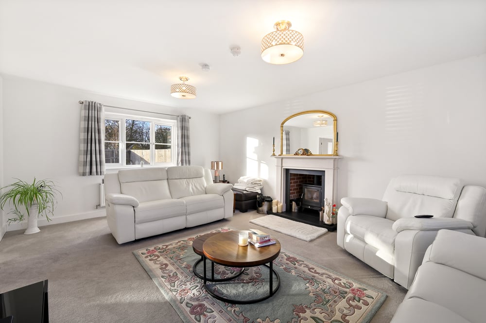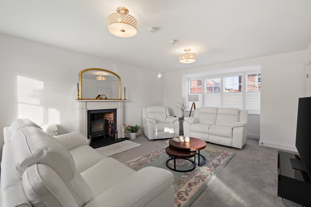 18' 4" x 13' 9" (5.59m x 4.19m) Box bay window to front and shutters, window to rear, fireplace with inset log burning stove, radiators, twin doors to Kitchen.