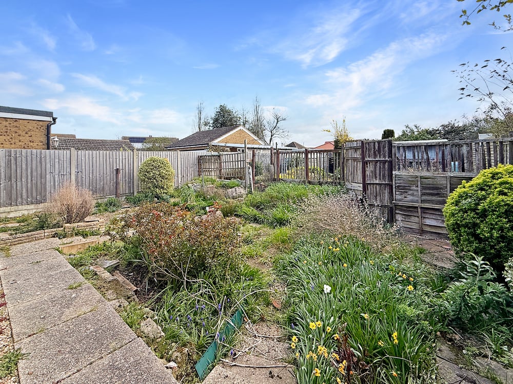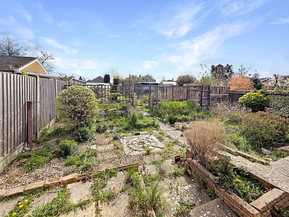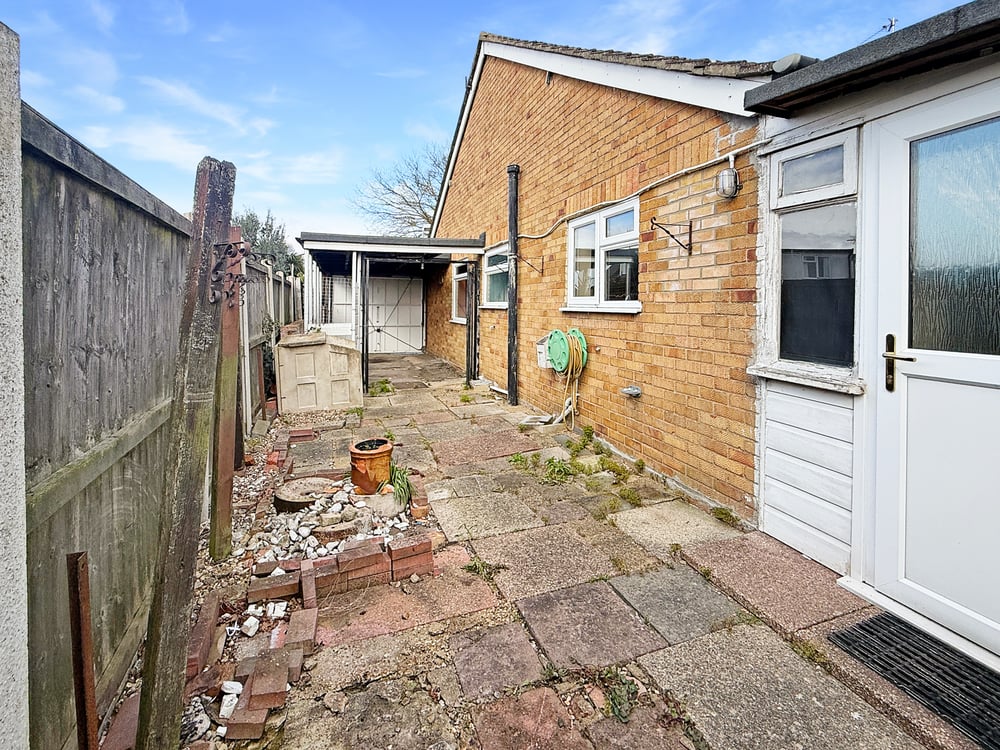 The generous rear garden is mainly laid to patio, retained by fencing, side access via the carport port garage door. Garden shed and green house.