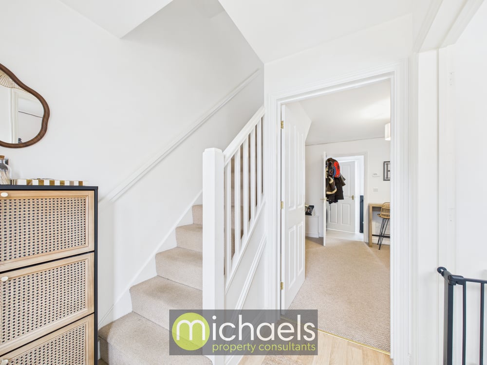 Upstairs, the landing serves two bedrooms, including a generous main bedroom with built-in cupboards, along with a family bathroom.