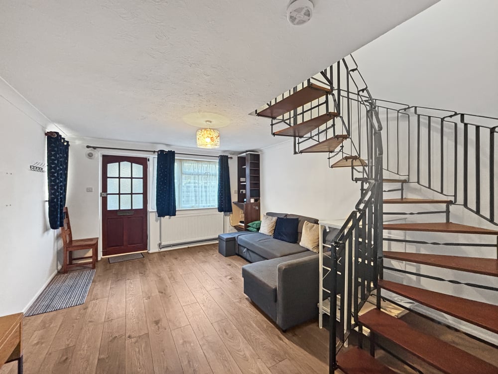 15' 8" x 12' 5" (4.78m x 3.78m) Window s to front and side, radiator, stairs to first floor.