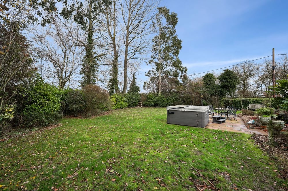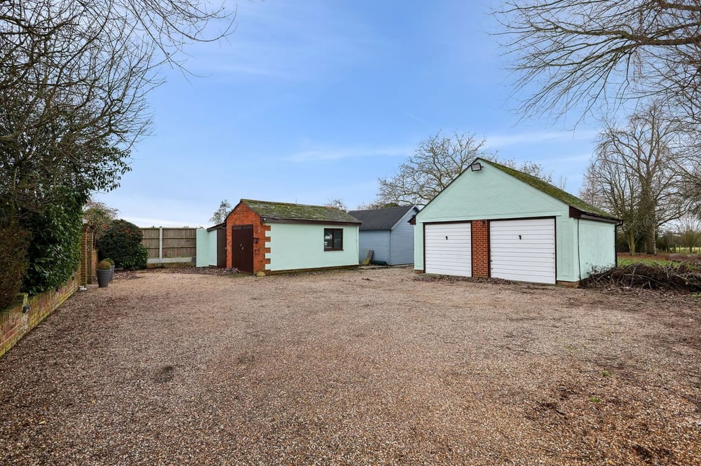 Externally, 'Silver Springs' enjoys a delightful wraparound garden approaching 0.75 acres, offering a high degree of privacy and stunning views over the surrounding unspoilt Essex countryside. The grounds include a detached double garage, a games room with bar, two substantial outbuildings ideal for storage or hobbies, and a sweeping gravel driveway providing ample off-road parking.