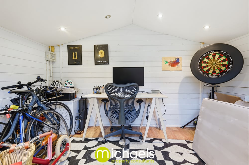 Externally, the rear garden is a real highlight, beginning with a porcelain patio and extending to a lawned area enclosed by panel fencing. A detached summer house sits at the rear of the garden and benefits from full power, making it ideal for home working, a studio, or a playroom. On-road parking is readily available for both residents and visitors.