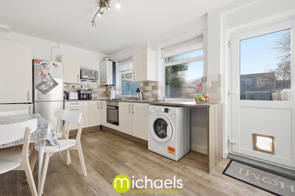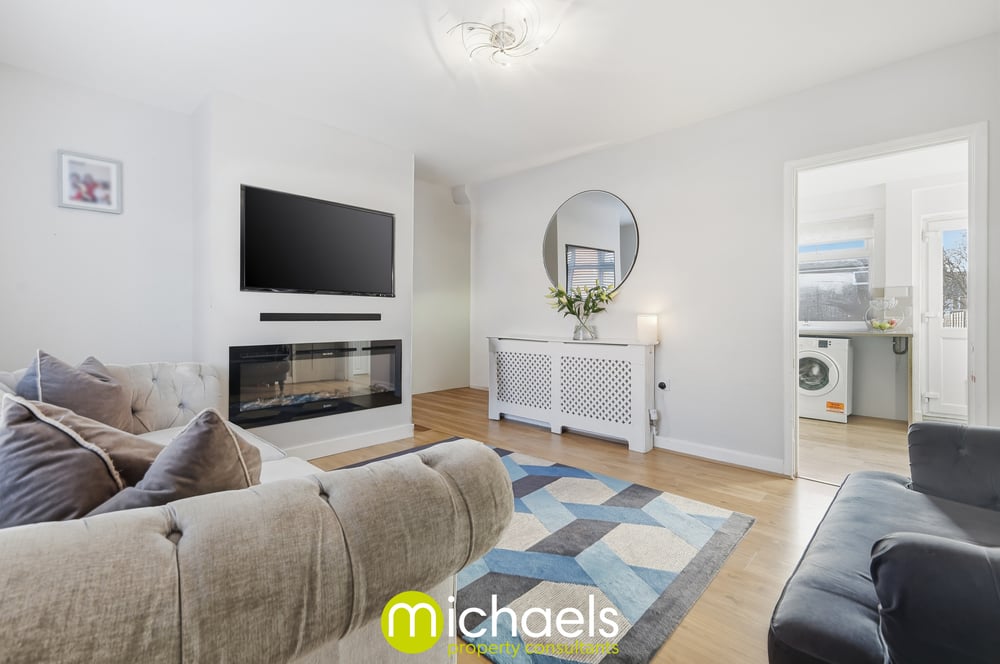 Notable highlights include generous bedroom and reception accommodation, beginning with a light and spacious reception room featuring a central media wall. The property also offers a kitchen-diner, a useful downstairs cloakroom, two double bedrooms and a comfortable third bedroom, along with a first-floor family bathroom. Externally, the home benefits from a generous, private, and enclosed rear garden, as well as off-road parking to the front via a private driveway.