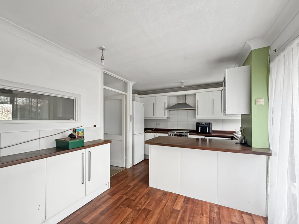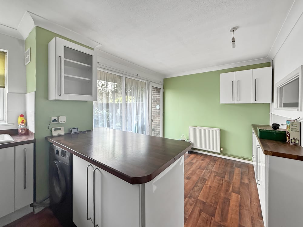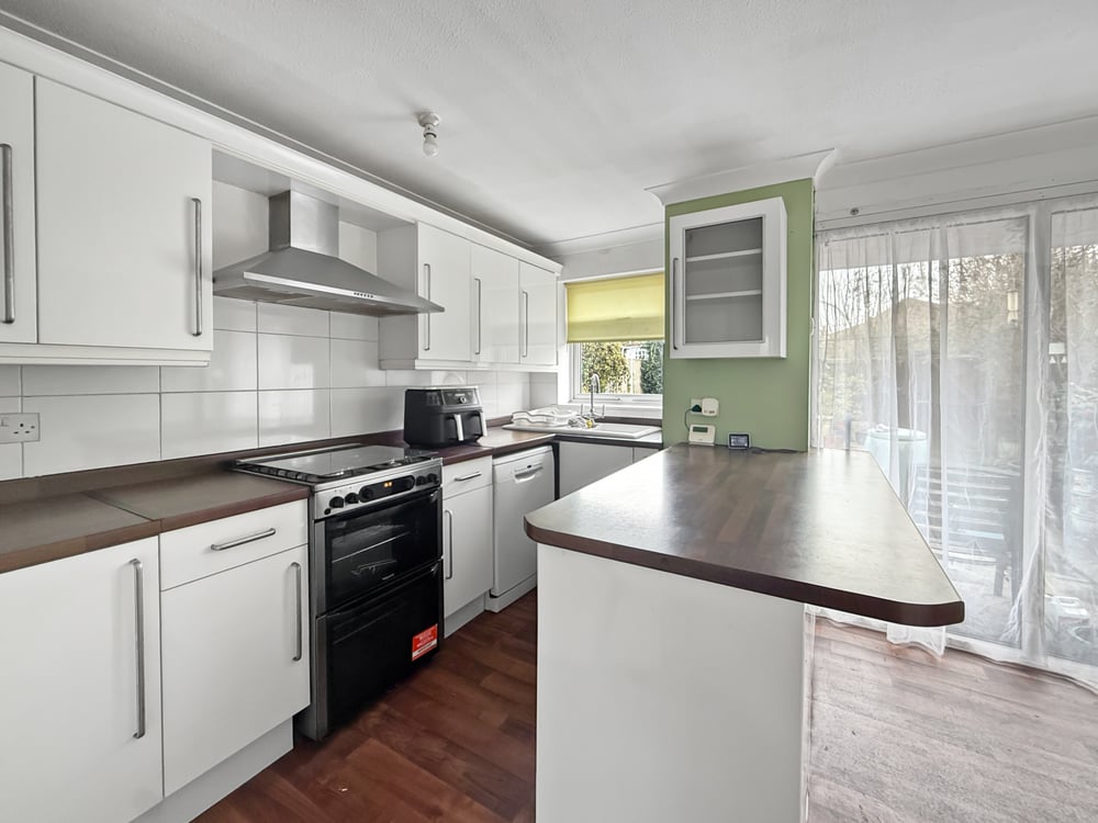 15' 1" x 8' 9" (4.60m x 2.67m) Double glazed window to rear, UPVC door, range of wall and base units, laminate worktop, integrated oven with over head fan, stainless steel sink, white goods to remain.