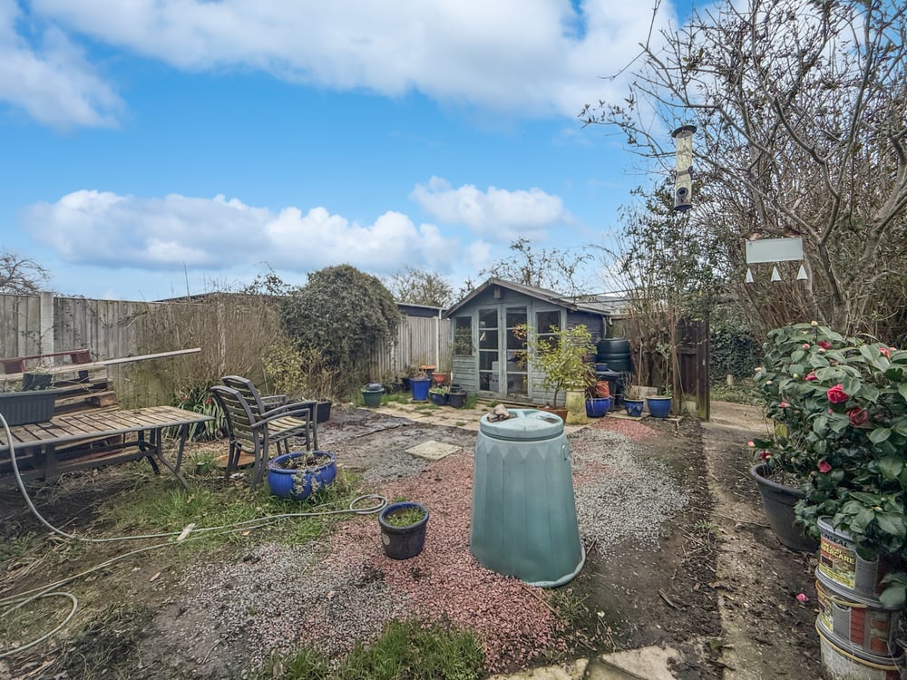 To the rear, the property benefits from a private enclosed garden, providing a pleasant outdoor space to relax or entertain. Gated rear access leads conveniently to a garage located in a nearby block. The garden also features a timber summer house which can be used as additional storage or a versatile outdoor retreat.