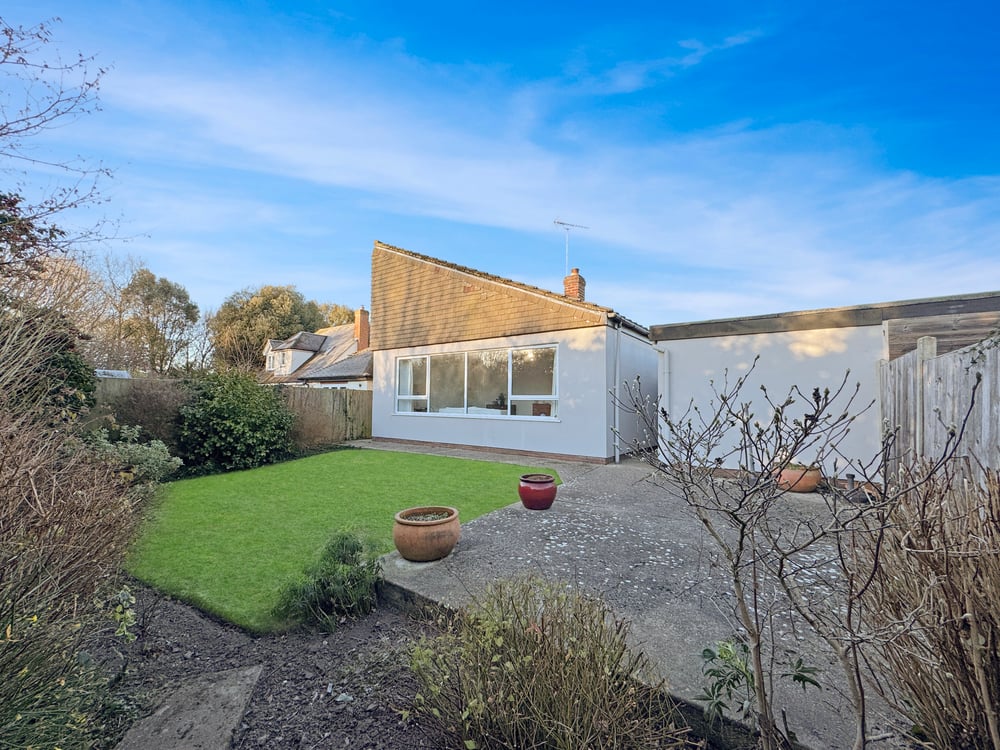 A generous front garden mainly laid to lawn and offering potential for further parking or storage of boat/caravan/motorhome.