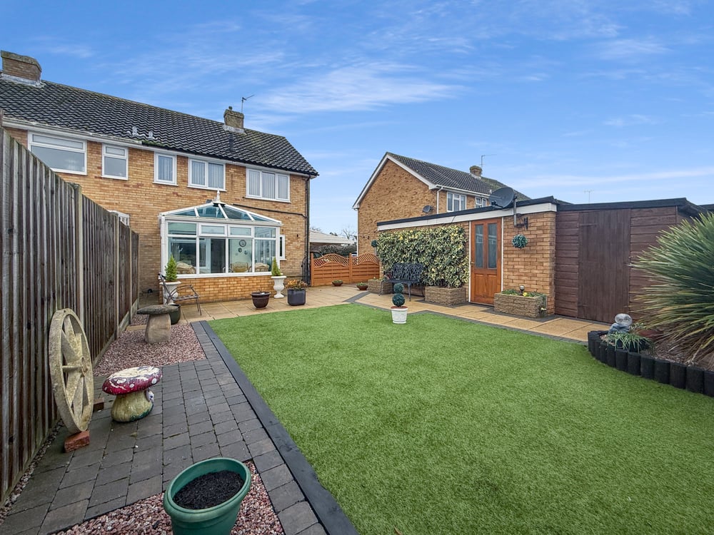 The internal accommodation is both well-balanced and versatile, comprising a welcoming entrance hall with staircase to the first floor, a generous living room featuring a bay window and fireplace, and an impressive 18’ kitchen/diner fitted with contemporary high-gloss units. Further enhancing the living space is a conservatory/sunroom, providing an ideal spot to enjoy views over the garden all year round.