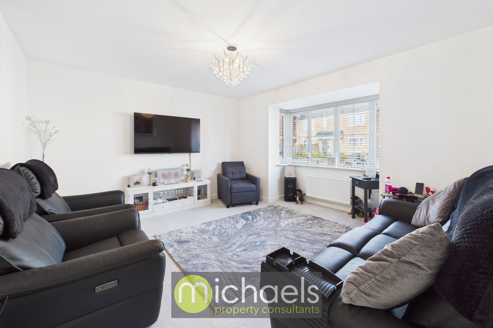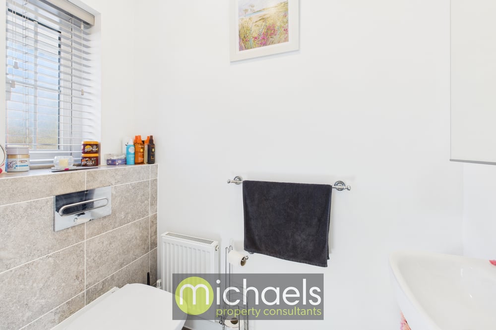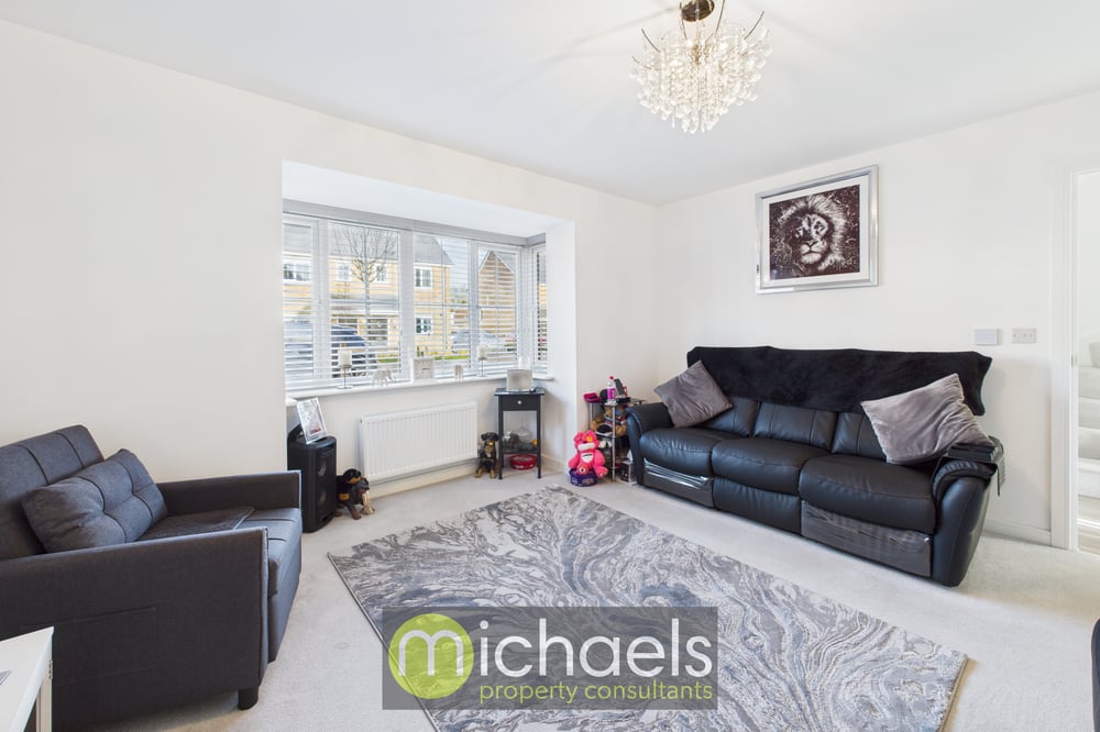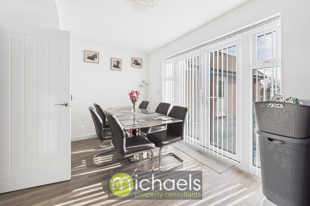 Internally, the accommodation is well balanced and ideal for modern family living. To the front of the property, a separate living room provides the perfect space for relaxing or movie nights, enhanced by a charming bay window that floods the room with natural light. To the rear, the impressive open-plan kitchen and dining area spans the full width of the home. The stylish U-shaped kitchen will appeal to keen cooks, while there is ample space for a family dining table. French doors open directly onto the garden, creating a seamless connection between indoor and outdoor living. The dining area also benefits from a useful storage cupboard, and a ground floor cloakroom is conveniently located off the hallway.