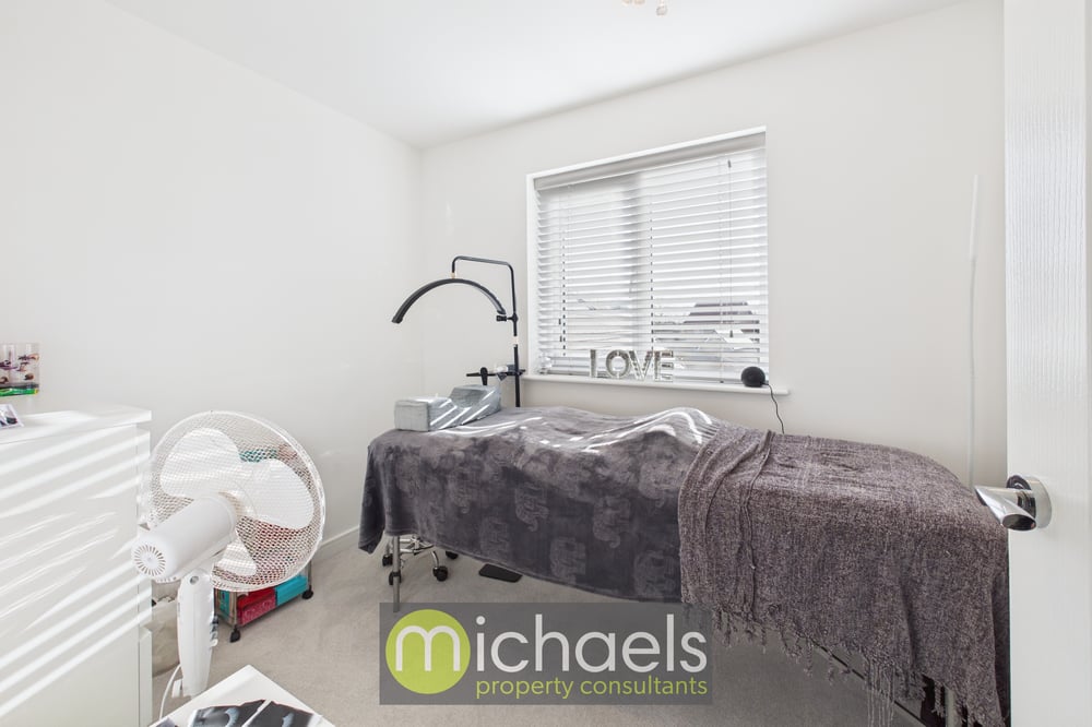 Upstairs, the home offers three bedrooms, two of which are generous doubles. The main bedroom enjoys the added luxury of an en-suite shower room, while the remaining bedrooms are served by a modern family bathroom. Bedroom three is ideal as a child’s room, guest bedroom, or a comfortable home office.