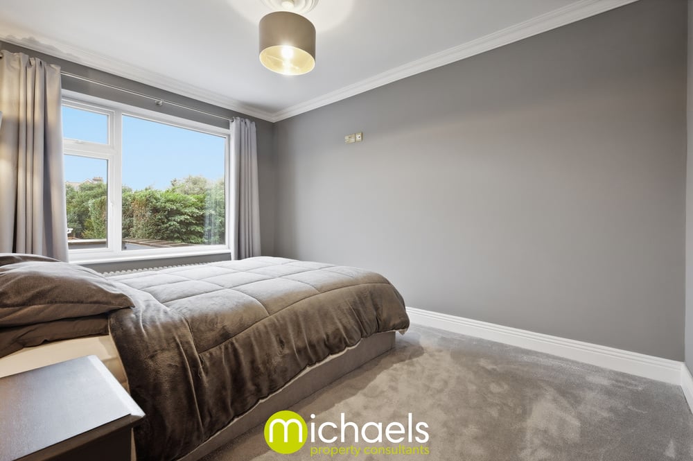 The main bedroom and second bedroom are both comfortable double rooms, each benefiting from wall-mounted bedside lighting. A spacious third bedroom provides flexibility as a child’s room, nursery, or dressing room.