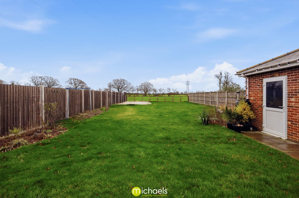Mainly laid to lawn with patio, gated side access, hard standing, enclosed by fencing and backing on to farmland.