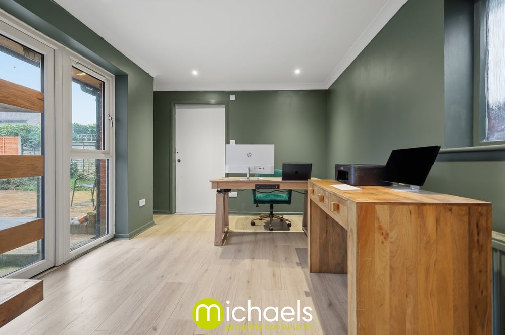 The ground floor also benefits from a study with patio doors opening to the side aspect, along with access to a ground floor wet room. This area could easily be reimagined as a ground floor bedroom with en-suite facilities, ideal for an elderly relative or guest accommodation.