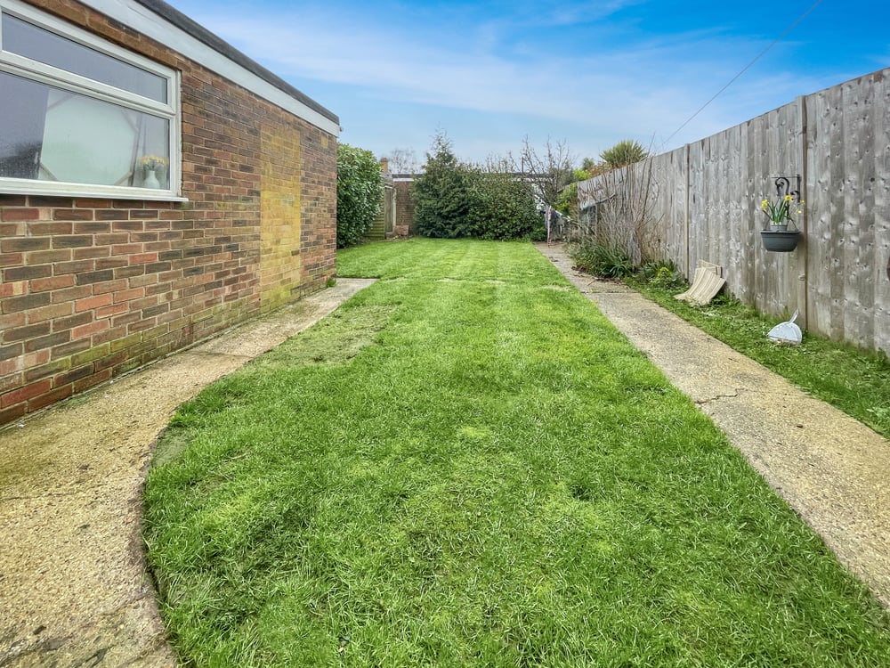 Mainly laid to lawn, enclosed by panel fencing and hedging, gated side access.