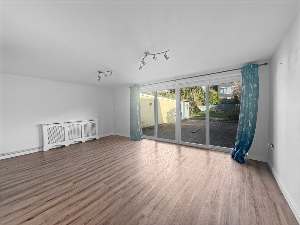 A substantial rear garden approx. 140ft, including patio area, raising up to lawn, retained by fencing, access to the garage and driveway.