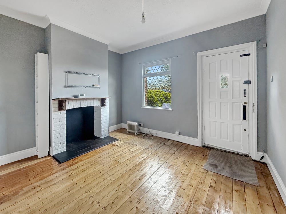 12' 4" x 9' 3" (3.76m x 2.82m) Wooden front door, double glazed window to front, fireplace opening. radiator.